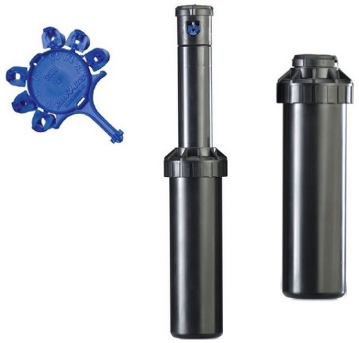 Atunci când apa ajunge sub presiune în instalație, aspersorul se ridică din sol și începe să distribuie apa conform tipului de duză montată. După oprirea alimentării, acesta revine automat la nivelul solului, devenind invizibil.
