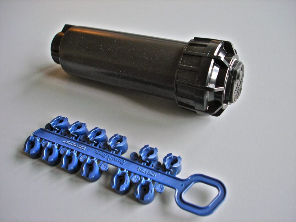 Apersorul rotativ din imaginea de mai sus este proiectat si produs de, probabil, cea mai reputata companie care se ocupa de irigatii, Rain Bird. El este o evolutie a unui model anterior, recunoscut deja in domeniu ca un rotor excelent. Ei bine, Rain Bird a petrecut cateva mii de ore de cercetare si testare pentru a produce acest model. Teste de uzura, de rezistenta, de reactie la diferente de presiune, de rezistena la socuri, si inca multe altele. In plus, productia se face in fabrici Rain Bird cu standarde de calitate ridicate.
