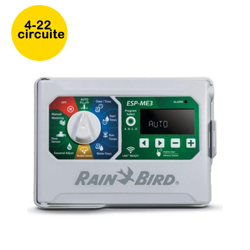 Programatorul Rain Bird ESP-ME3 este o soluție de control a sistemelor de irigații proiectată special pentru aplicatii rezidențiale și comerciale ușoare, dar suficient de robustă pentru cerințe variate de udare. Acest controller oferă o combinație unică de flexibilitate, extensibilitate și funcționalități avansate, ajutând utilizatorii să gestioneze mai bine resursele de apă, să reducă costurile și să asigure un gazon sau o grădină sănătoasă pe tot parcursul sezonului de irigare.